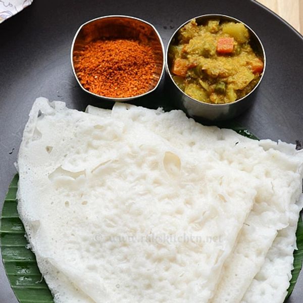 Thin, soft rice crepes with a delicate, melt-in-the-mouth texture. Lightly flavored and perfect for pairing with rich, spicy curries. A subtle, comforting South Indian specialty that delights every palate.